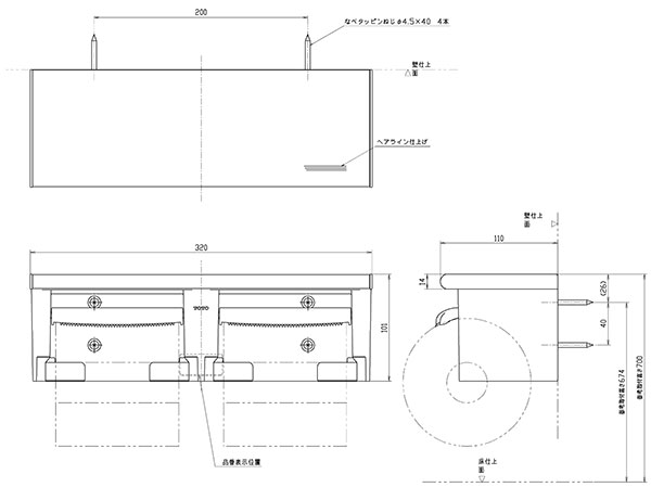 ※ペーパー取付の為に、商品左右に130mm以上の空間が必要です。