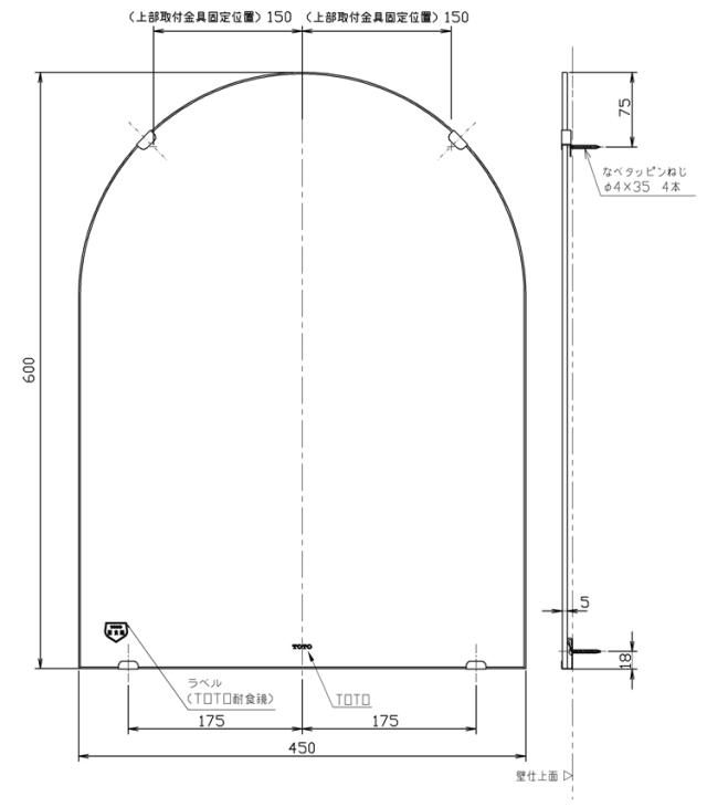 【TOTO】化粧鏡(耐食鏡) アーチ形 YM4560FA