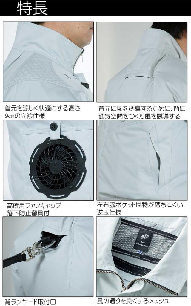 ・首元に風を誘導するために背に通気空間をつくり風を誘導し涼しさがアップ