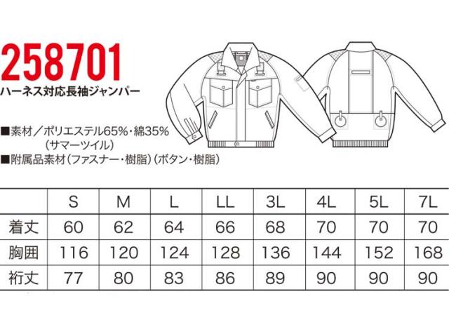 [在庫限り]クロダルマ エアセンサー1 フルハーネス対応長袖ジャンパー(ファンなし) 258701