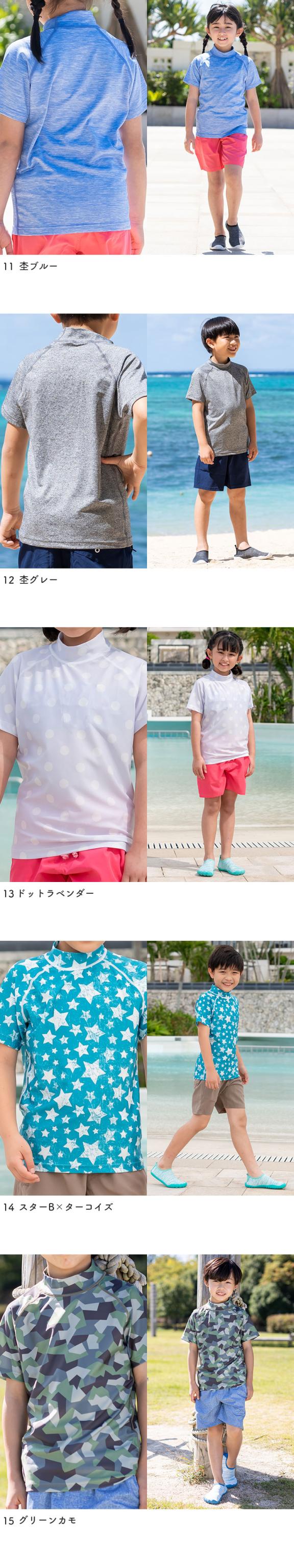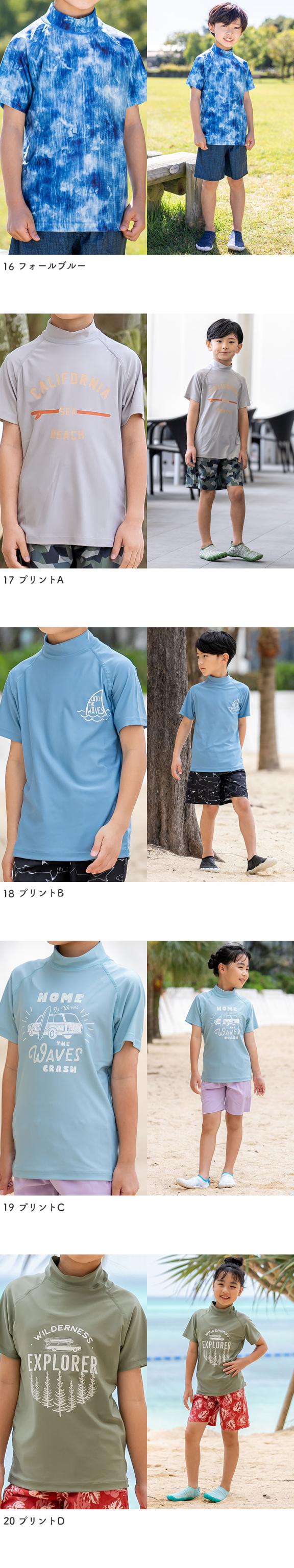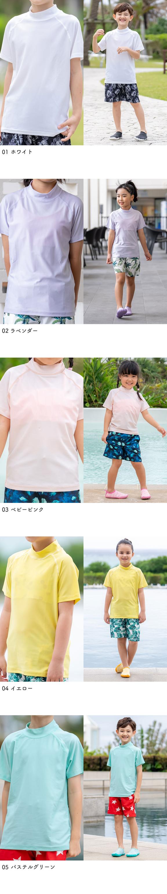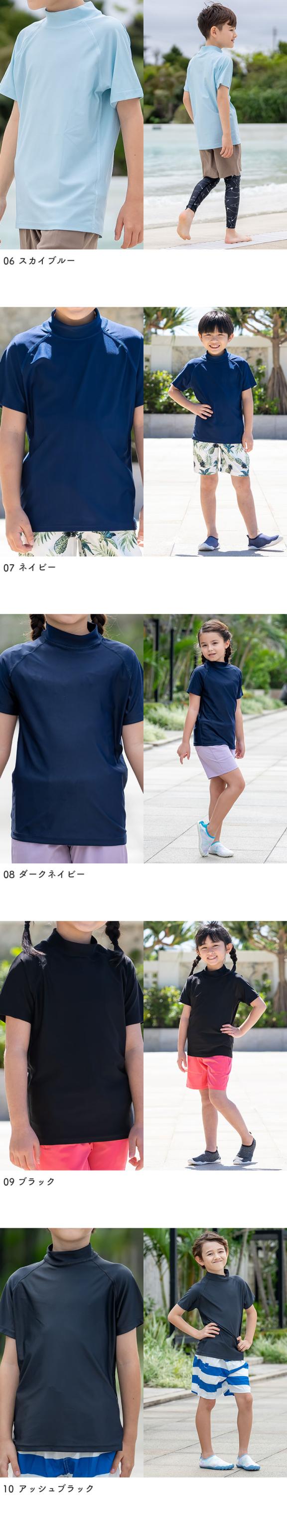 ラッシュガード キッズ 半袖Tシャツ 立ち襟 水着 男の子 女の子 ジュニア UV 日焼け対策