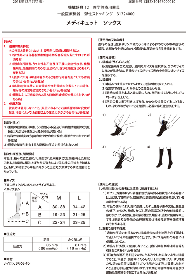 商品名 おそとでメディキュット メディカルリンパケア ハイソックス M/L ブランド メディキュット メーカー レキットベンキーザー・ジャパン サイズ M、L 容量 1足 成分 ナイロン、ポリウレタン 生産国 日本 ※ こちらの商品は国内正規品となります。 区分 一般医療機器(クラスI) 医療機器届出番号 13B2X10167000010 医療機器一般的名称 弾性ストッキング