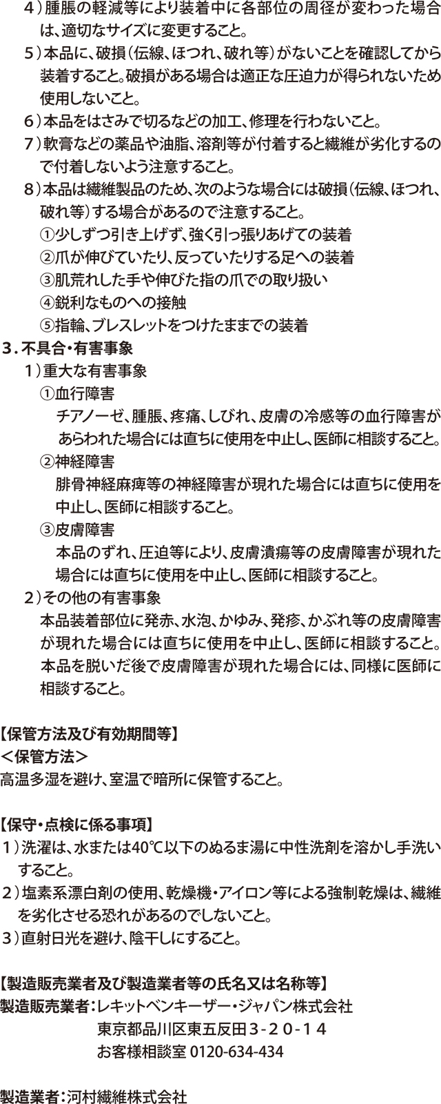 - 立ち仕事のため欠かせません。仕事中はだるさが軽減されますが、暫く正座などをすると指先がつることがあります。
