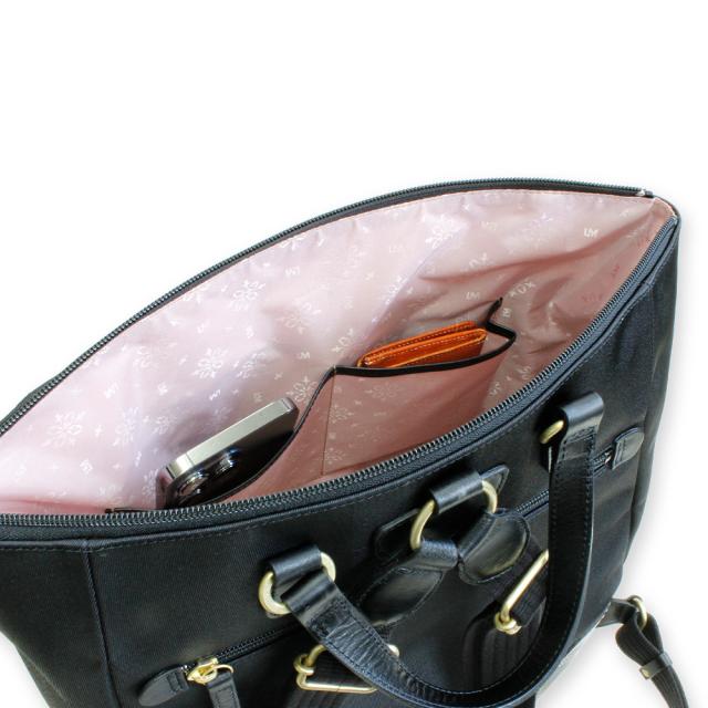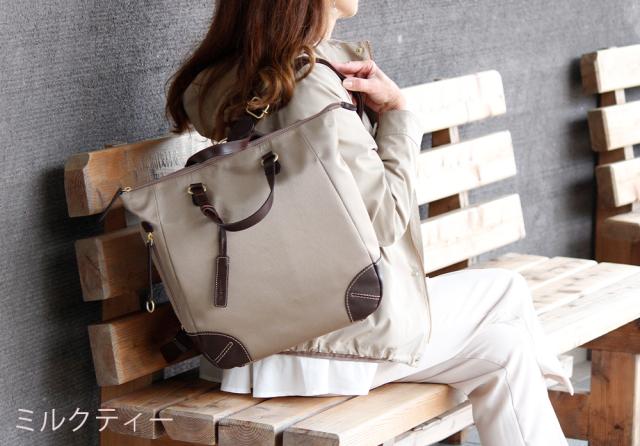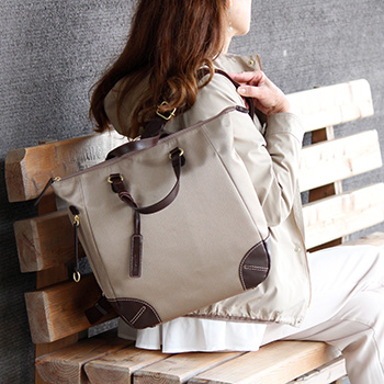 背中に安定感あるやさしさでフィットし、トートバッグとしてのシルエットを保ちながら、リュックとしてしっかり使える、機能性、耐久性が自慢です。