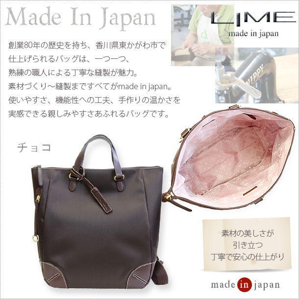 ライムのバッグは洗練された熟練の職人の方々の手作業により1本、1本丁寧に真心をこめて仕上げられています。
