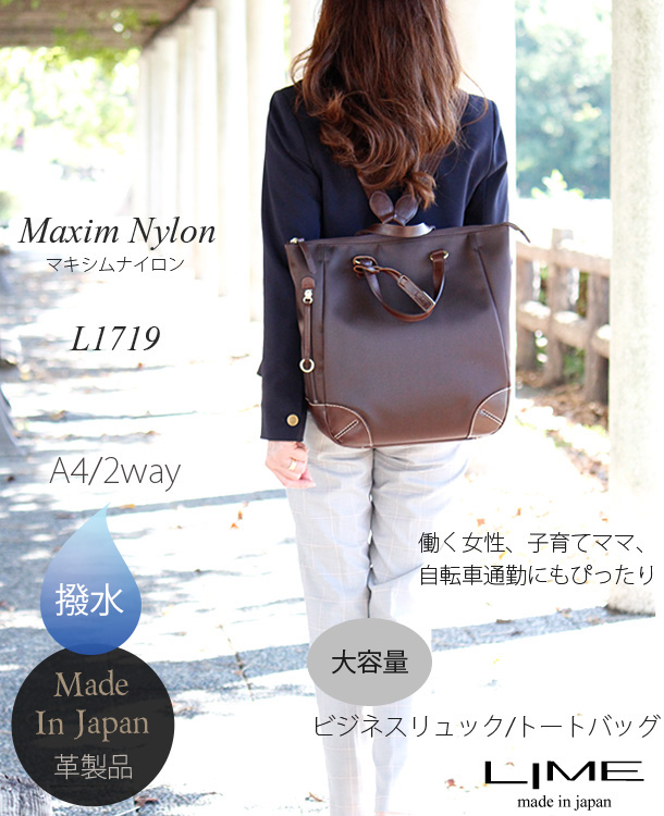 リュック レディース 大容量 軽量 A4 a4 機能的 撥水 バッグ 本革 革 上質 高級 大人 シンプル 2way ナイロン レザー 日本製 ライム マキシムナイロン L1719 通勤 通学 おしゃれ デイパック 高密度ナイロン 軽い 軽量 女性 ビジネスバッグ ビジネス 仕事用 旅行