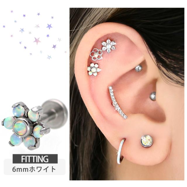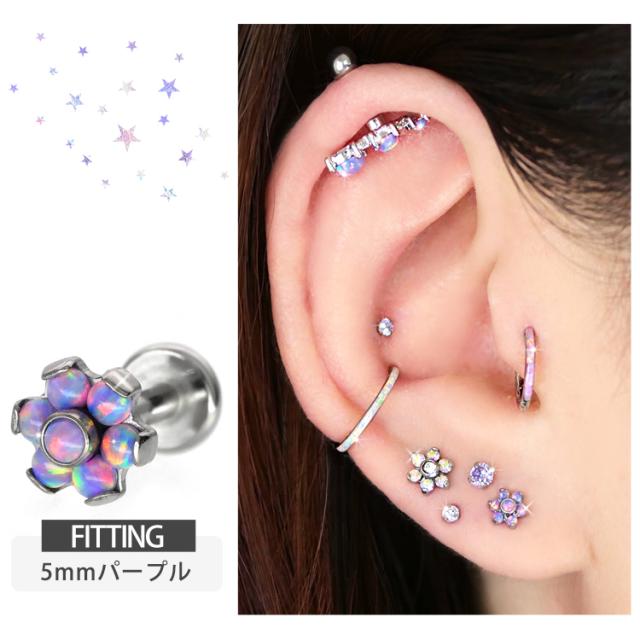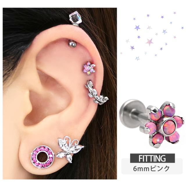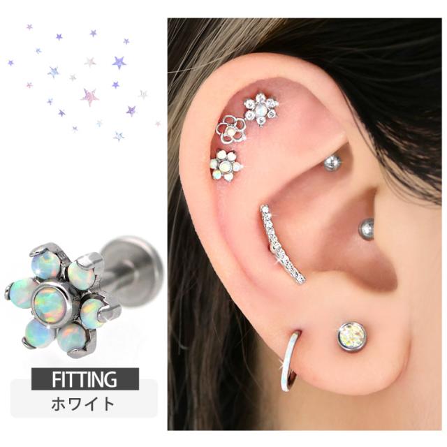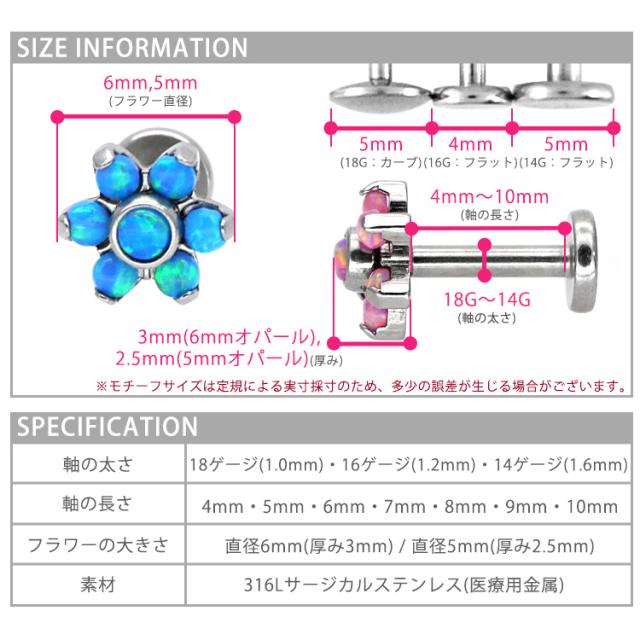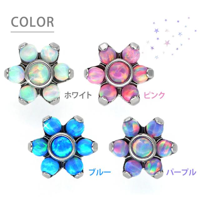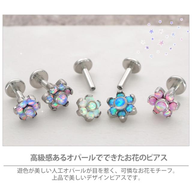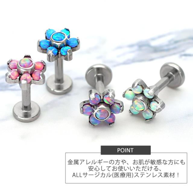 [カスタム] ボディピアス シンセティックオパールフラワーラブレット 18G 16G 14G