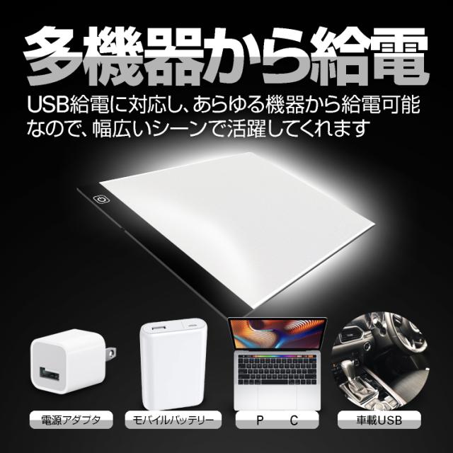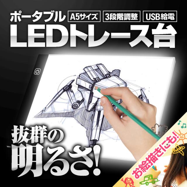 USB給電 LEDトレース台 A5サイズ 3段階光量調整 薄型計量設計 持ち運びに便利 マンガ イラスト 絵写し 測量 病院にも A5TB210