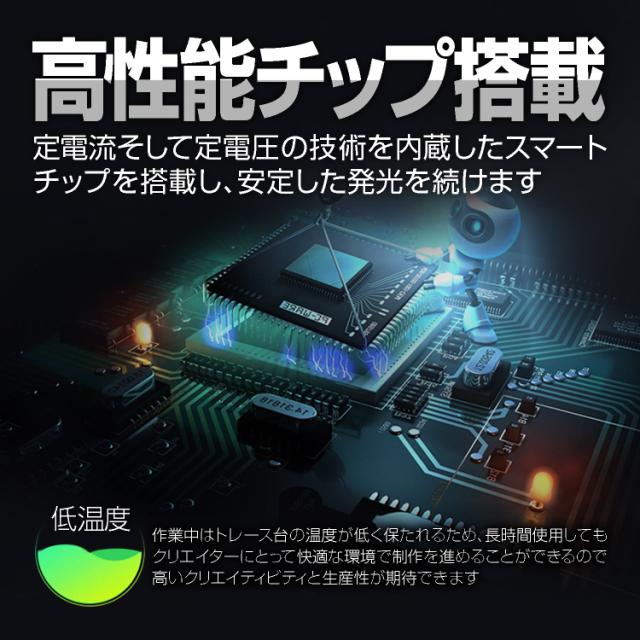 定電流低電圧の技術を内蔵したスマートチップを搭載し、安定した発光を続けます