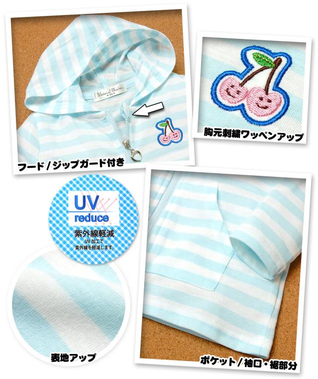 【送料無料】女児 ベビー UV加工 フルジップ パーカー アウター ベビー服 女の子 80cm 90cm 95cm a-1892b-sx【メール便対応】