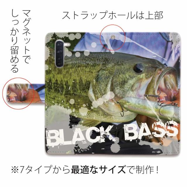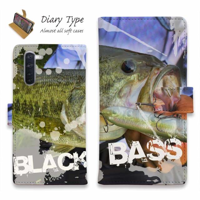 Android スマホケース 手帳型 マグネット カード収納 OPPO Reno5 A OPPO Reno3 A Android One S8 ケース シンプルスマホ6 らくらくスマートフォン LG V60 ThinQ xiaomi mi URBANO アンドロイド ケース 釣り 魚 ルアー ビッグバス! BLACK BASS