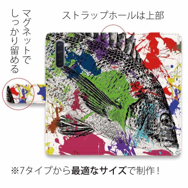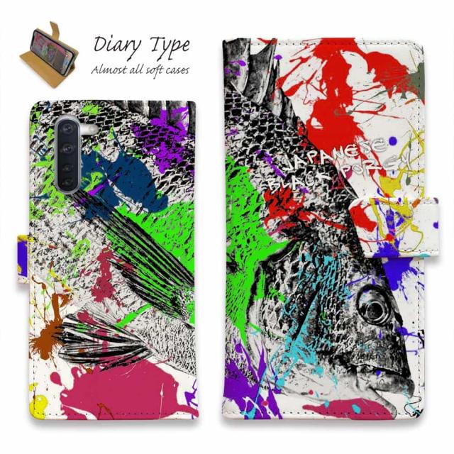 Android スマホケース 手帳型 マグネット カード収納 OPPO Reno5 A OPPO Reno3 A Android One S8 ケース シンプルスマホ6 らくらくスマートフォン LG V60 ThinQ xiaomi mi URBANO アンドロイド ケース 釣り 魚 ルアー クロダイ(チヌ) ペンキペイント