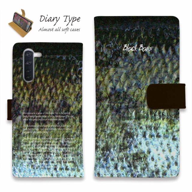 Android スマホケース 手帳型 マグネット カード収納 OPPO Reno5 A OPPO Reno3 A Android One S8 ケース シンプルスマホ6 らくらくスマートフォン LG V60 ThinQ xiaomi mi URBANO アンドロイド ケース 釣り 魚 ルアー ブラックバス柄
