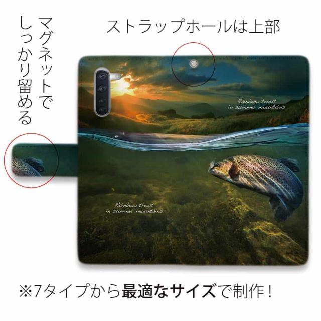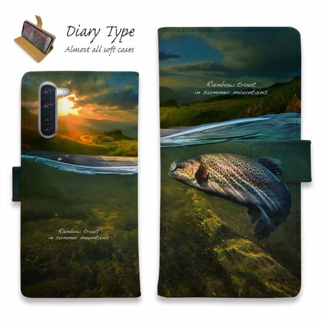 Android スマホケース 手帳型 マグネット カード収納 OPPO Reno5 A OPPO Reno3 A Android One S8 ケース シンプルスマホ6 らくらくスマートフォン LG V60 ThinQ xiaomi mi URBANO アンドロイド ケース 釣り 魚 ルアー 夏山のニジマス