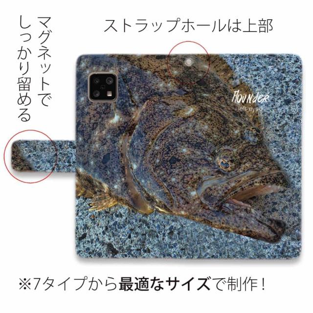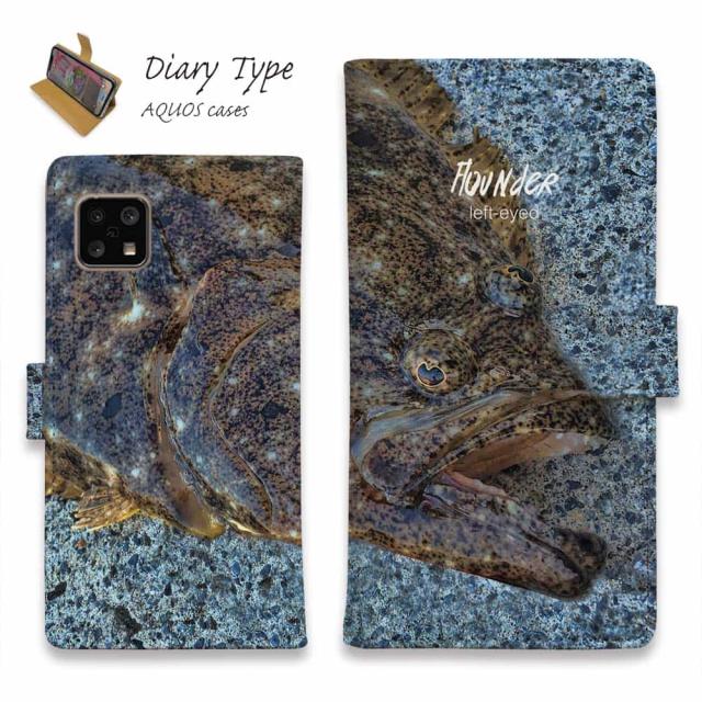 AQUOS sense10 アクオス センス10 スマホケース 手帳型 マグネット カード収納 AQUOS sense9 sense8 R9 R8 Pro wish4 wish3 sense7 plus ケース sense6 sense4 アクオス ケース 釣り 魚 ルアー 砂の王者・ヒラメ