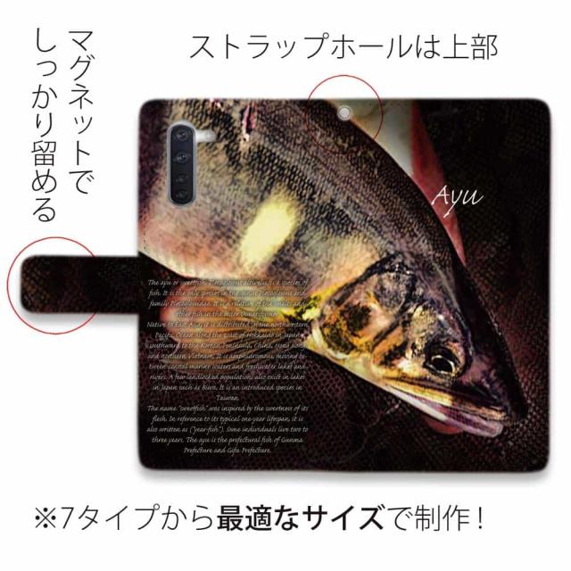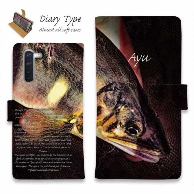 Android スマホケース 手帳型 マグネット カード収納 OPPO Reno5 A OPPO Reno3 A Android One S8 ケース シンプルスマホ6 らくらくスマートフォン LG V60 ThinQ xiaomi mi URBANO アンドロイド ケース 釣り 魚 ルアー 鮎(アユ)の追い星