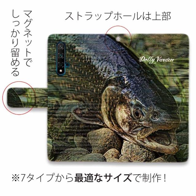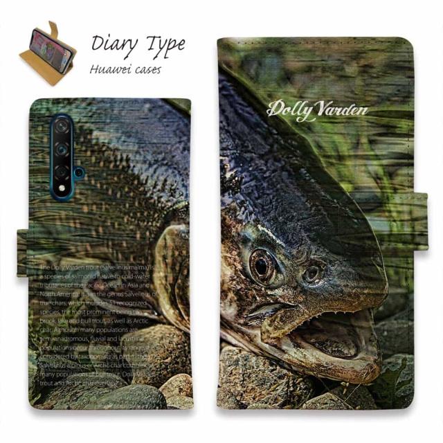 Huawei P30 lite スマホケース 手帳型 マグネット カード収納 Huawei P30 Pro ケース HUAWEI Mate 20 Pro Huawei nova3 Huawei P20 lite honor 9 ファーウェイ ケース 釣り 魚 ルアー オショロコマ