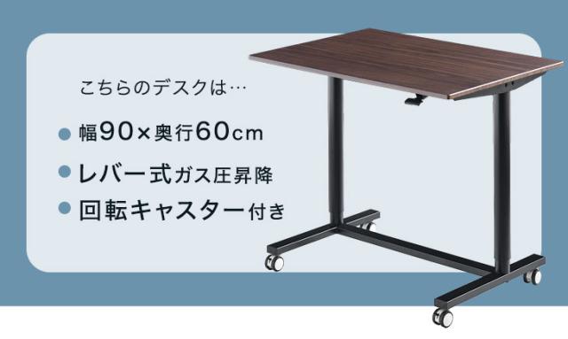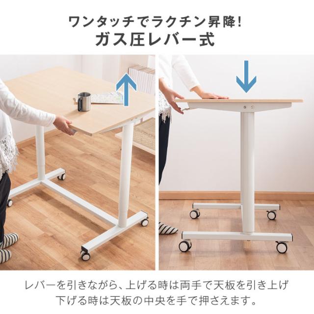 スタンディングデスク テーブル 高さ調節 幅90 PCデスク 楽々ワンタッチ昇降! 昇降デスク 昇降テーブル 伸縮 机 デスク つくえ ガス圧式 スタンディングテーブル 木製 学習机 勉強机 上下昇降 キャスタ