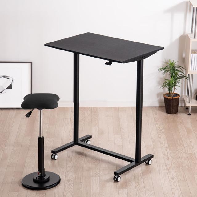 スタンディングデスク 幅90 昇降デスク 昇降テーブル PCデスク 高さ調節 伸縮 ガス圧式 スタンディングテーブル 木製 上下昇降 キャスター付き 法人 会社 ブラウン ホワイト ブラック【商品番号:45400021】