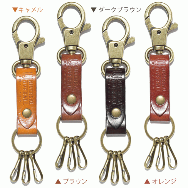 UNIVERSAL OVERALL 3連キーホルダー レディース メンズ キーリング カラビナ キーホルダー 男女兼用 ユニセックス キーケース ユニバーサル オーバーオール アメカジ レザー 本革 革 3連 UNIVERSALOVERALL