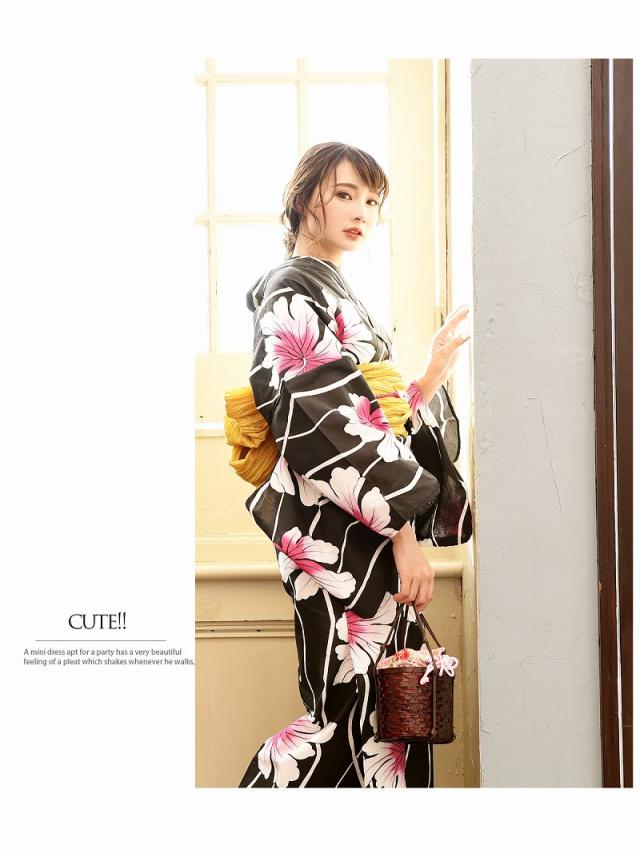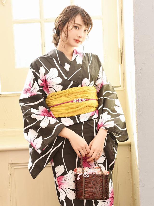☆大人の色気漂うブラック地に、上品なフラワー柄のレディース浴衣で、彼やお店のお客様を悩殺♪