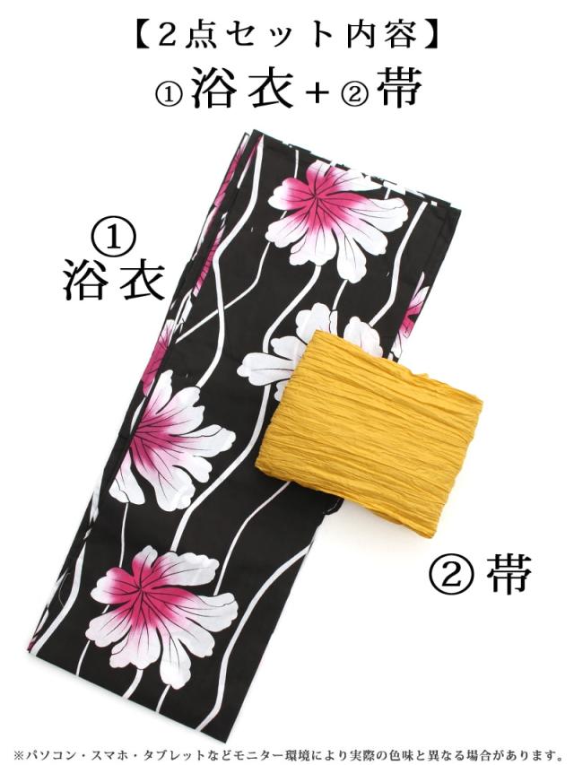 ☆浴衣・シワ兵児帯のお得な2セットの浴衣は、作り帯だから帯結びに慣れていない人でも◎な一人でも簡単に着付け出来ちゃうレディース浴衣♪