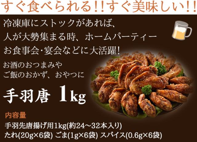 | 内容量 | 手羽先唐揚げ用1kg(約24〜32本入り) たれ(20g×6袋) ごま(1g×6袋) スパイス(0.6g×6袋) |