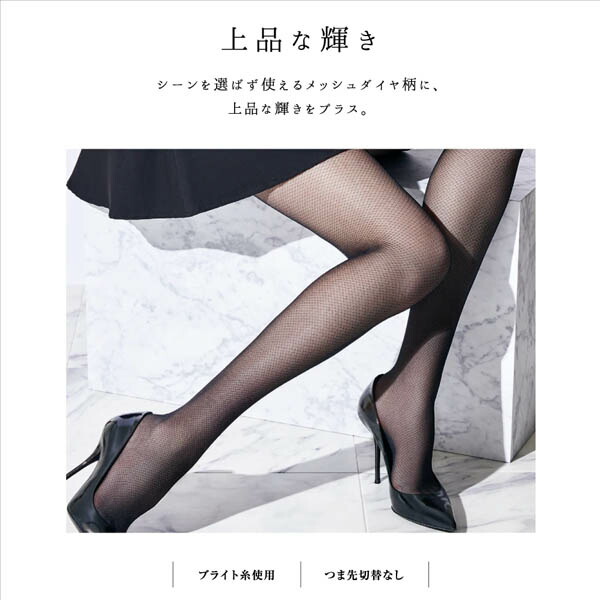 定番のダイヤ柄ストッキングに、ブライト糸を使用することでさりげない輝きをプラス。