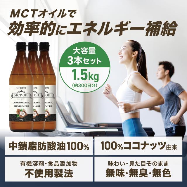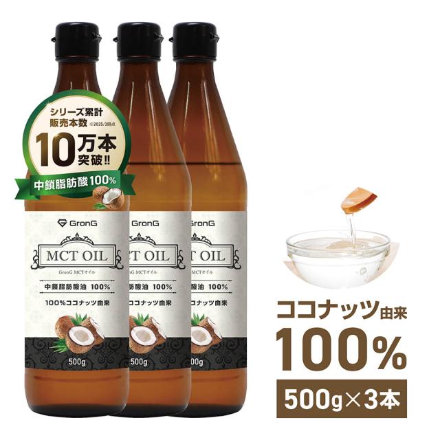 グロング MCTオイル 500g MCT オイル エムシーティーオイル ココナッツ由来 中鎖脂肪酸油100% 3本セット