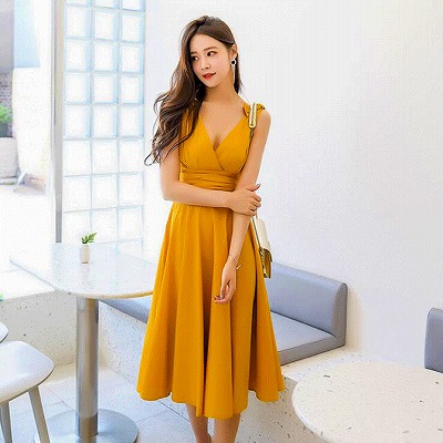 ミモレ丈ワンピ ノースリーブ ふんわり ワンピース Vネック カジュアル キャミソールワンピース 春夏新作 さらっと1枚で着るだけでスタイルが決まる、ロング丈のワンピースです。 ウエスト切替部分にギャザーを入れ、贅沢に生地を使った落ち感のある美しいシルエットです。 シンプルだからこそシルエットに拘った、実力派アイテムです☆