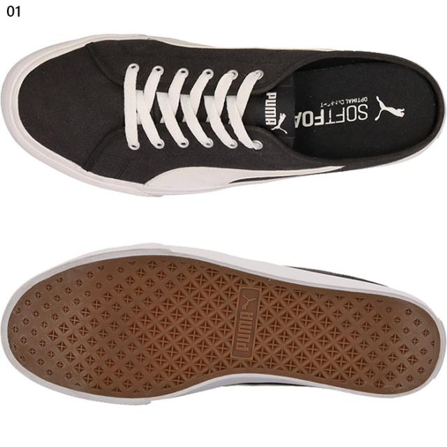 プーマのクラシックなコートスタイルモデルをベースにしたバリミュールです。キャンバス素材のアッパーにフォームストリップが映えるデザイン。インソールには快適なクッション性のSoftfoam+を採用しました。スポーティーでファッショナブルな春夏に最適な1足です。