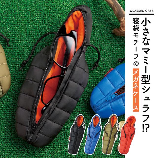メガネケース 眼鏡ケース めがね 眼鏡 メガネ サングラス ケース 小物入れ スリーピングバッグ メガネケース カラビナ付き フック 寝袋 シェラフ マミー型 旅行 雑貨 アウトドア ピクニック キャンプ 登山 海外 通学 通勤
