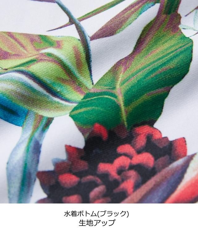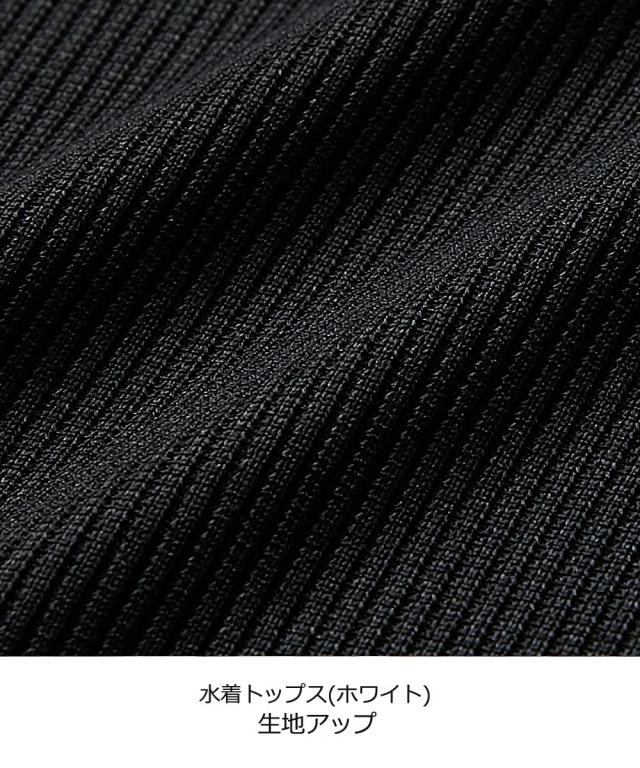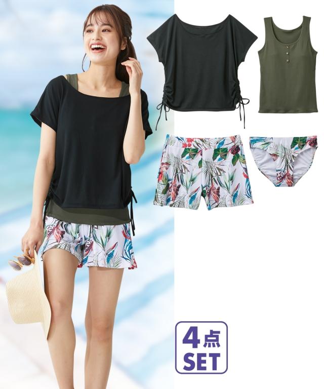 水着 大きいサイズ レディース リブ 無地 タンク×花柄 ボトム 4点セット ブラック/ホワイト L/LL/3L ニッセン