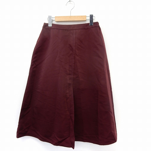 【中古】OMEKASHI オメカシ スカート フレア 膝下丈 スリット バックジップ ウエストゴム F エンジ /ST4 レディース