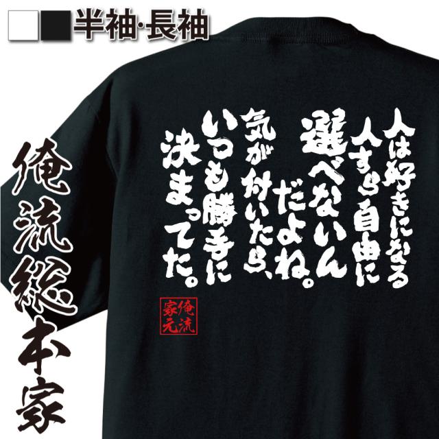 おもしろtシャツ 俺流総本家 魂心Tシャツ 【人は好きになる人すら自由に選べないんだよね。気が付いたら、いつも勝手に決まってた】おもしろ雑貨 漢字 文字Tシャツ おもしろ プレゼント 面白 文字tシャツ 長袖 大きいサイズ ティシャツ バックプリントtシャツ 恋 恋愛