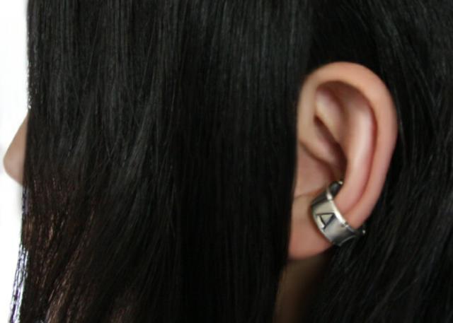 イヤーカフだからこそのボリュームであり、ピアスではなかなか実現し辛いコーディネートも可能に。