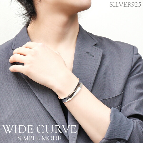 鏡面仕上げ ワイド カーブ シルバーバングル 幅1.2cm シルバー シルバー925 メンズ バングル ブレスレット ブレス 腕輪 男性用バングル