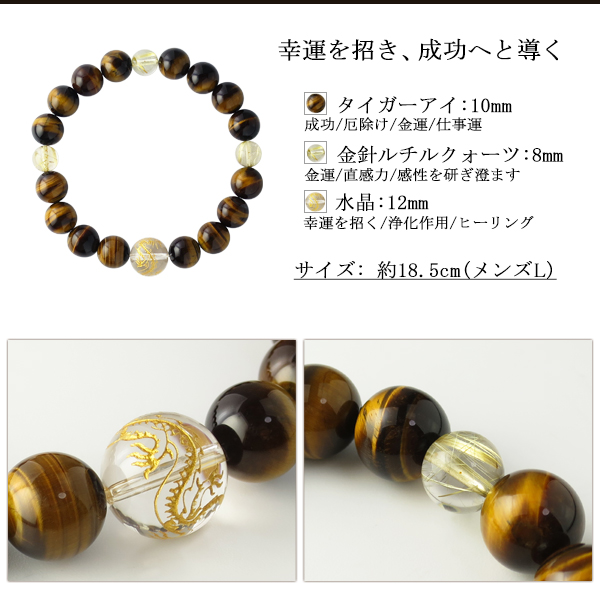 運気アップの龍モチーフに、タイガーアイは仕事運・ルチルクォーツは金運の石として有名♪