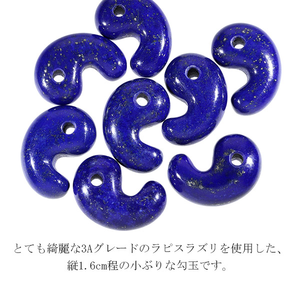 とても綺麗な3Aグレードのラピスラズリを使用した、縦1.6cm程の小ぶりな勾玉です。