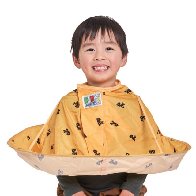 お子様の成長は早いものです。散髪も毎月のようにしないといかないのですが、お子様は何故か散髪屋さんに行くことをイヤがりますよね。だったら、お家で散髪をしてあげるのはどうでしょうか。パパやママの腕が試されることにはなりますが、親子のコミュニケーションがしっかり取れる良い機会でもあります。本製品は、ご家庭で散髪をする時に着用する専用エプロンで、切った髪の毛がエプロンの裾部分に留まるようになってます。エプロンに加え、カットバサミとすきバサミが付属されてますので、スグに散髪ができます。エプロンは、折りたためば直径30センチほどのコンパクトな大きさになります。