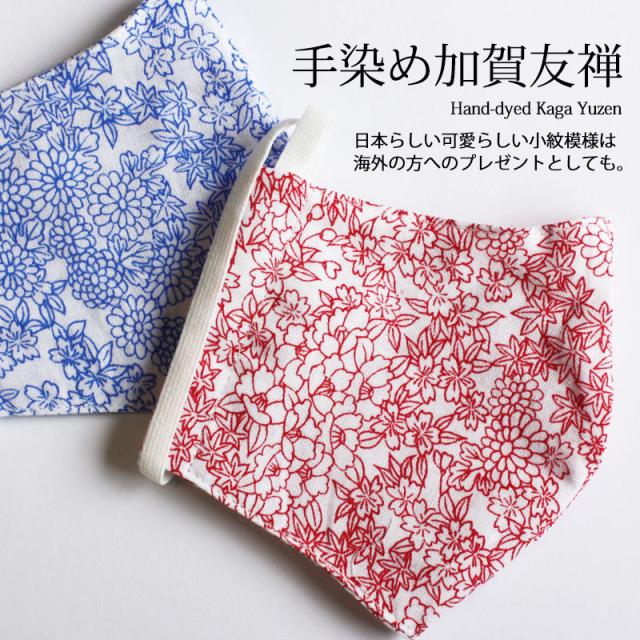 手染め加賀友禅のかわいい小紋模様で、まち歩きもおしゃれ!お顔にフィットする立体タイプ。綿100%なので 安心安全!しっかりした国内縫製技術ですので繰り返し洗ってご使用いただけます。ちょっとしたプレゼントやギフト、海外の方へのお土産にもお勧めです!素材/ マスク:綿 紐:ナイロン・ポリウレタン形状/ 立体型サイズ/ 縦最長約 12.5cm×横最長約19cm(折りたたみ時:横約11cm)男女フリーサイズ※手作りのため多少の誤差はございます。製造/ 日本製マスク 洗える 日本製 綿100% 繰り返し使える 立体型 布マスク おしゃれ 大人用 男女兼用 かわいい 国内発送 何度も使える 洗濯可能 エコ 和柄 送料無料