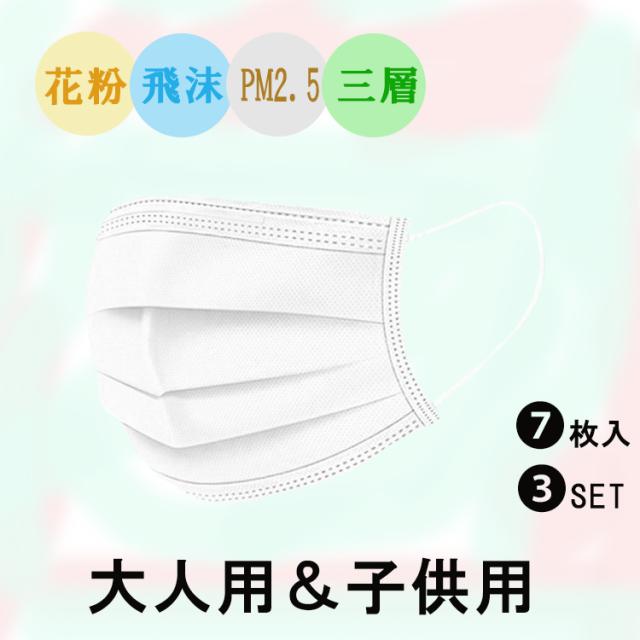 【在庫あり】マスク 1袋/7枚入×3セット Mask 3層型 花粉 ウィルス 粉塵 微粒子 微生物 PM2.5 男女共用 レギュラー クリーン 使い捨て メール便送料無料