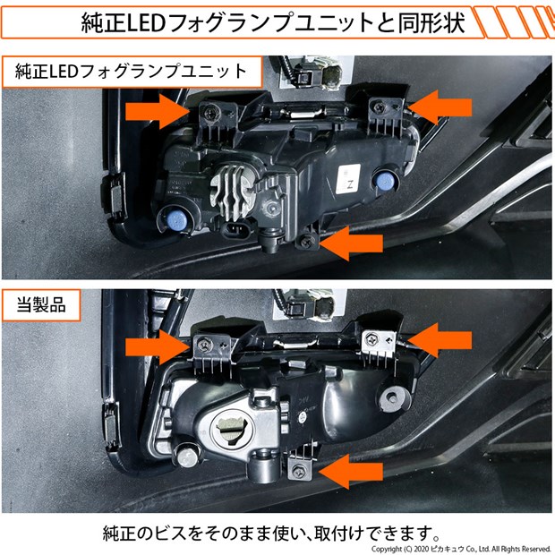 純正同等形状のフォグランプユニットで、純正LEDフォグランプユニットとの交換がスムーズに行えます。 | |||