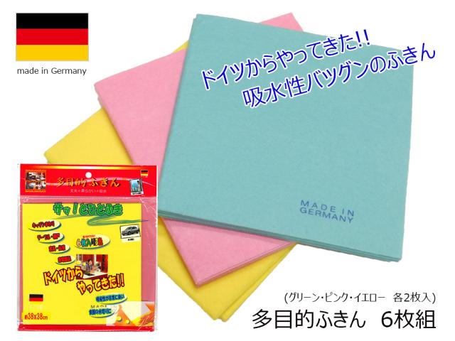 ドイツのふきん 丈夫で長持ち 驚きの吸水力! 吸水性抜群 サッとひと拭き 柔らかい「多目的ふきん 6枚組」