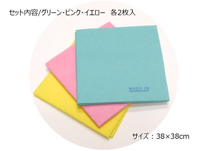 ■商品サイズ:38×38×0.1cm■商品重量:約)16g(1枚当)■材質:レーヨン85%、PP15%■セット内容:グリーン・ピンク・イエロー 各2枚■原産国:ドイツ