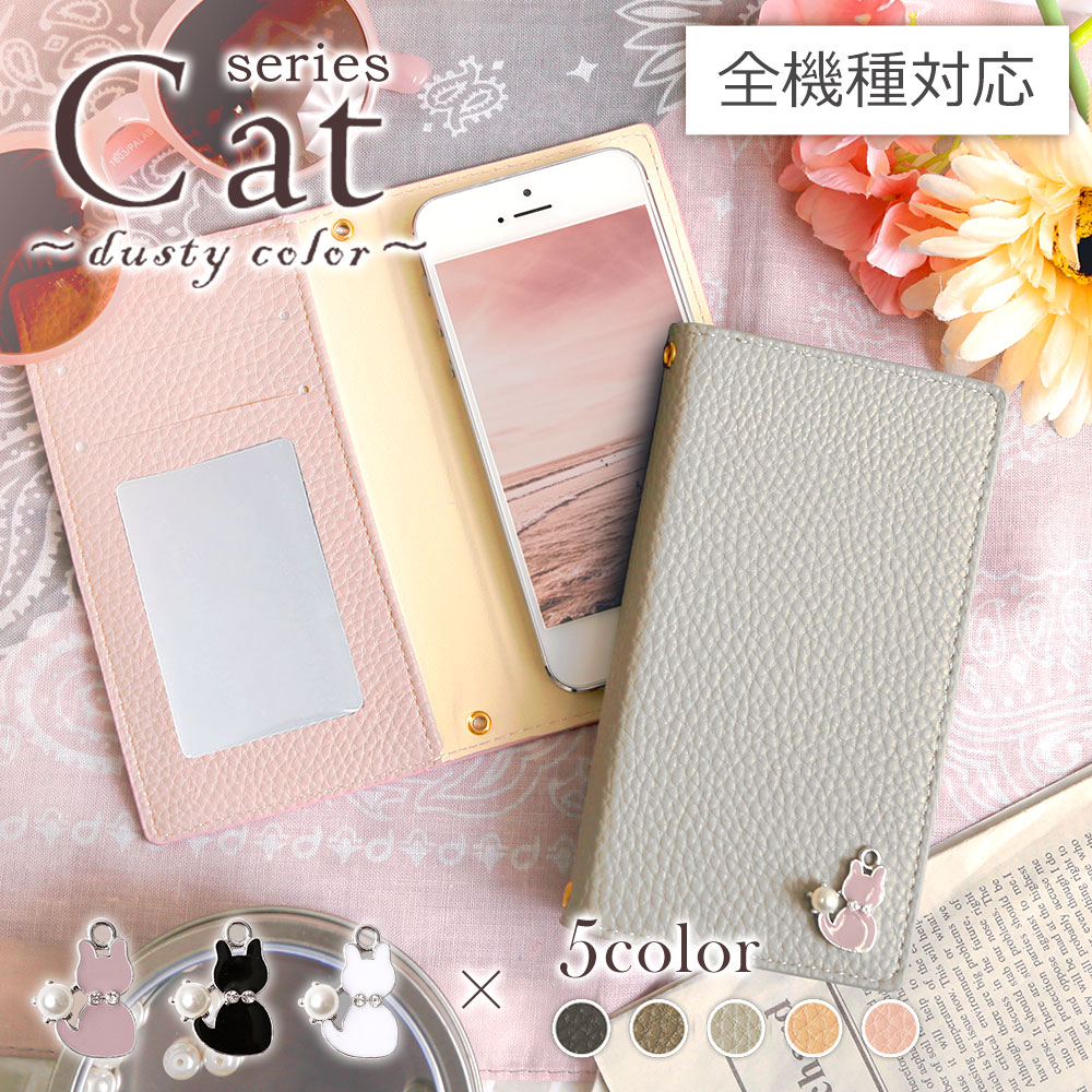大人シンプルレザー調手帳型ケースが全5色×猫パーツ3種類!