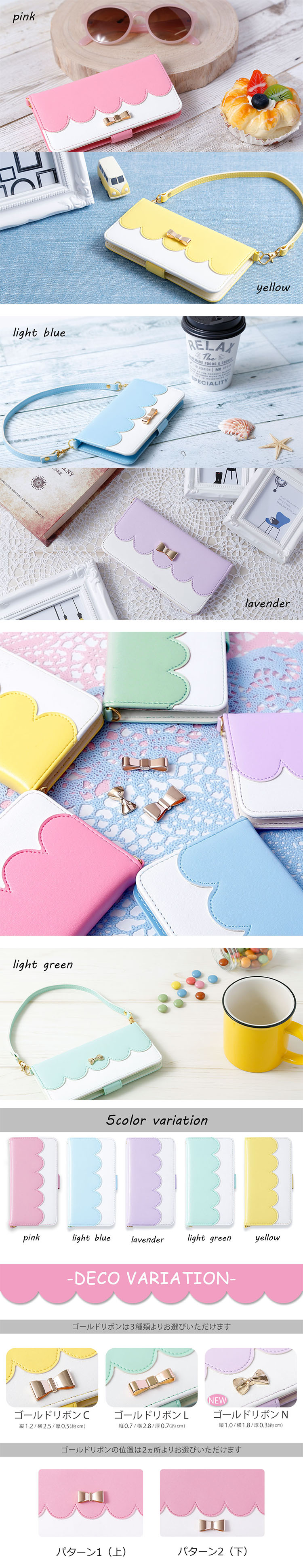 ガーリーな印象のスカラップとキュートなパステルカラーを組み合わせたスマホケースです。