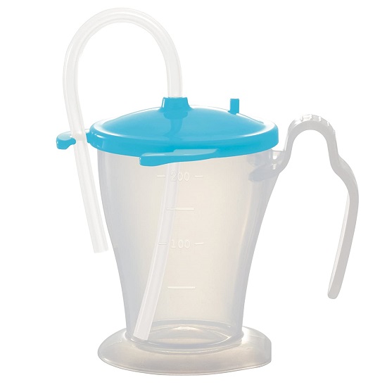 ・ベッド柵にも手にもぴったりフィットする、こぼしにくいストローカップ。