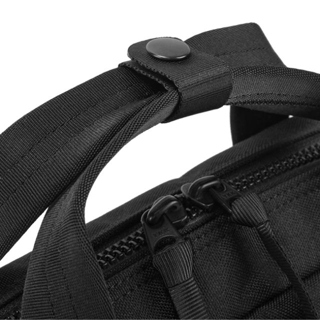 | 軽量で撥水性にも優れ、デイリーユースとしての機能性を充実させたベーシックなビジネスシリーズです。全てのアイテムにPCやタブレットの収納に適したポケットを備え、トロリーバー通しの機能も設けています。 本体生地は裏面にTPU加工を施したポリエステルオックスを採用し、ファスナーには軽さと操作性の良さを重視して金属ファスナーのように見えるMETALUXE(R) Toughと呼ばれるビスロンの高強度タイプを使用しています。 フロントに使い勝手の良い3つのファスナーポケットのデザインを取り入れ、1番大きなファスナーポケットの内装には伸縮性のあるパワーネット素材のポケットとペン差し、キーフックが付属します。その他の2つのポケットは文庫本やスマートフォン、パスケースやポケットティッシュなどの取り出し頻度の高い様々な収納物に適したサイズになっています。 また、PCやタブレットの収納に適したポケットを備え、トロリーバー通し機能も取り付けています。 |