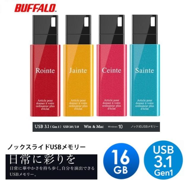 16GB バッファロー 16GB ノックスライドUSBメモリ SB3.1(Gen1)/USB3.0対応 カラフルUSB RUF3-KSW16G おしゃれなUSBメモリ